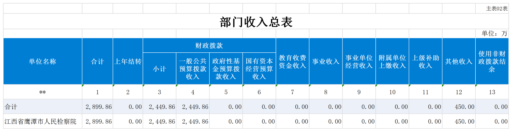 二、部门收入总表