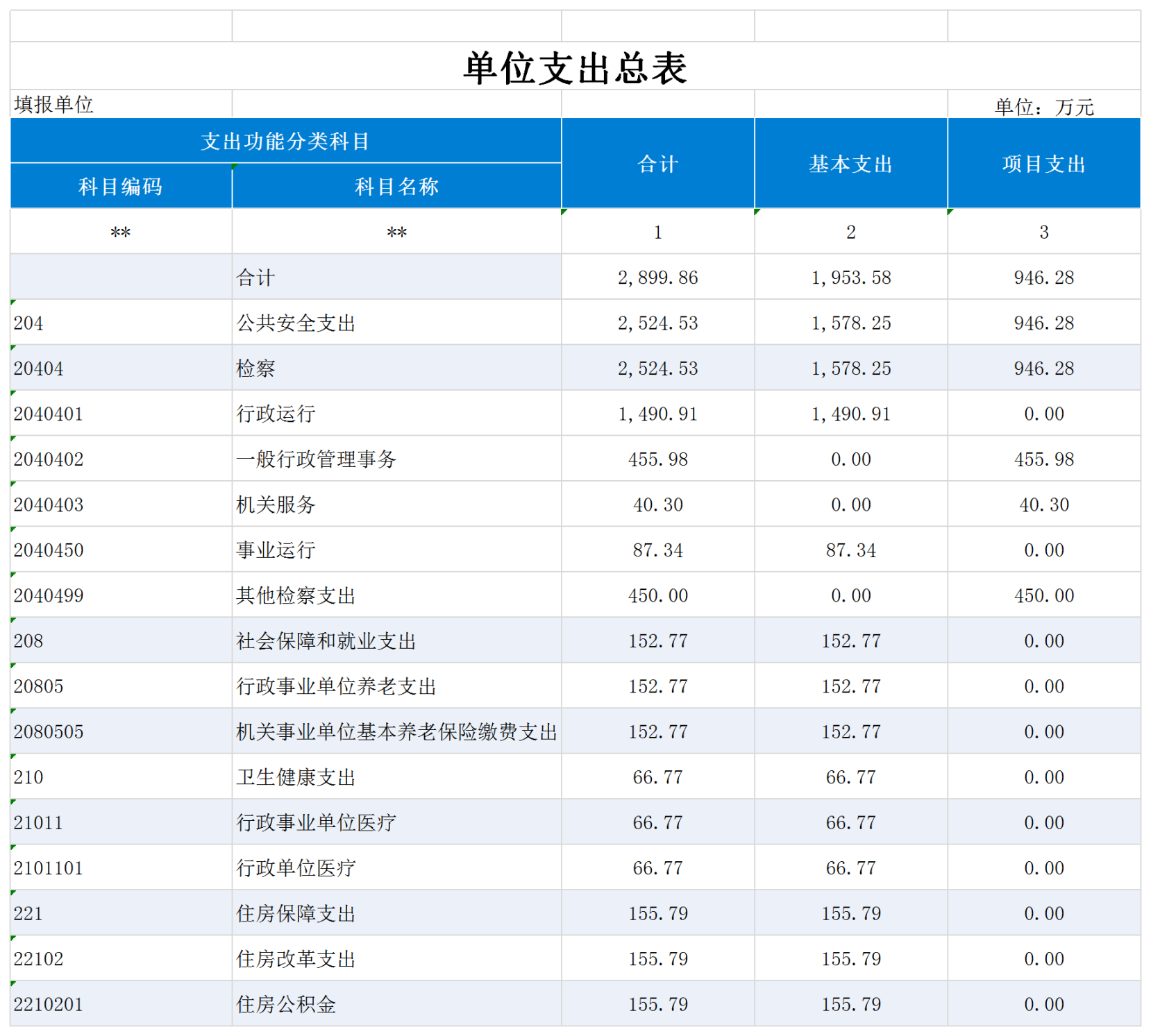 公共安全支出(类)检察(款)行政运行(项):反映行政单位(包括实行公务员管理的事业单位)的基本支出。