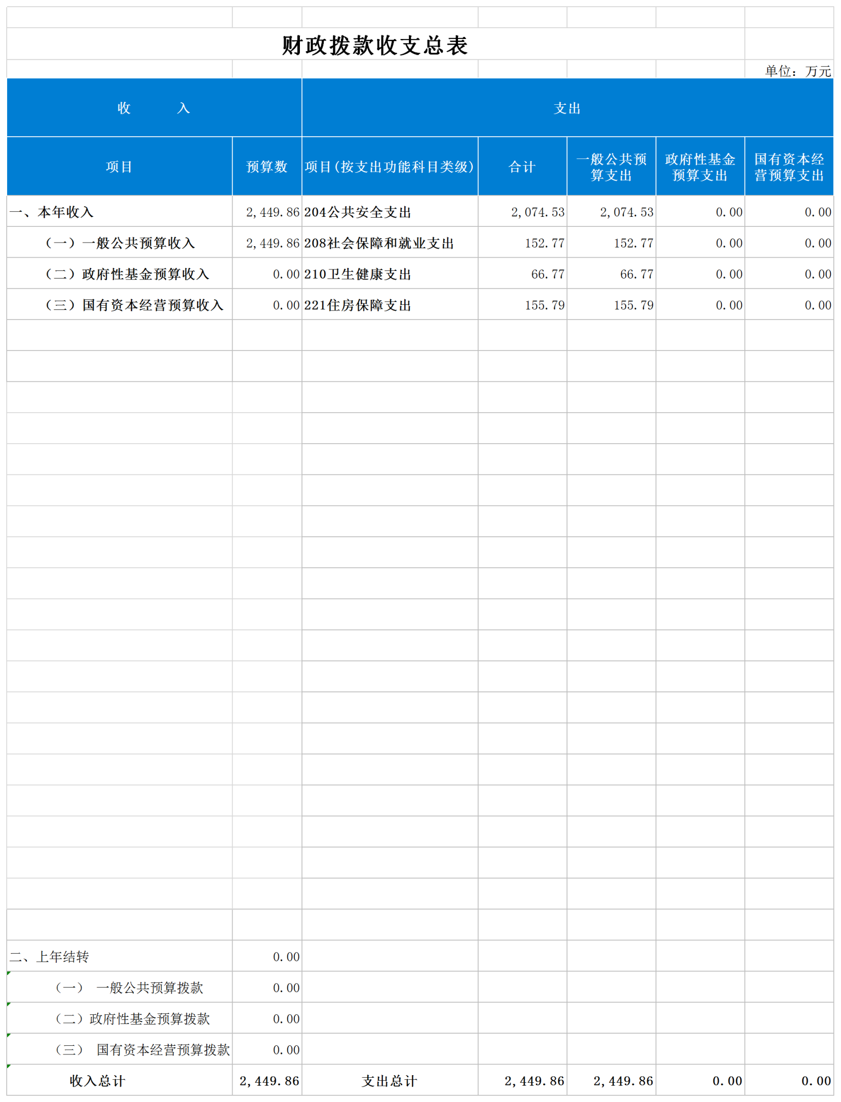 四、财政拨款收支总表