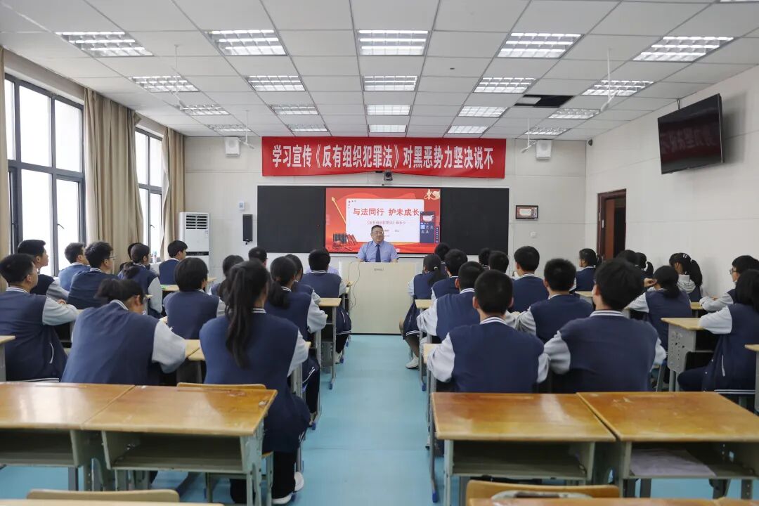 张江结合影视剧作品《狂飙》《九部的检察官》及“裸聊敲诈”“职业打假人”等热门新闻,以通俗易懂的语言、生动详实的案例深入浅出地讲解了黑社会性质组织、恶势力组织、保护伞、软暴力、网络黑恶犯罪等法律知识,并为同学们提供“如何辨别和防范黑恶势力犯罪”的防护小锦囊:一是及时报案,发现有组织犯罪线索及时向公安机关举报;二是提高警惕,注意防微杜渐,与黑恶犯罪划清界限;三是加强防范,避免被黑恶势力侵害。