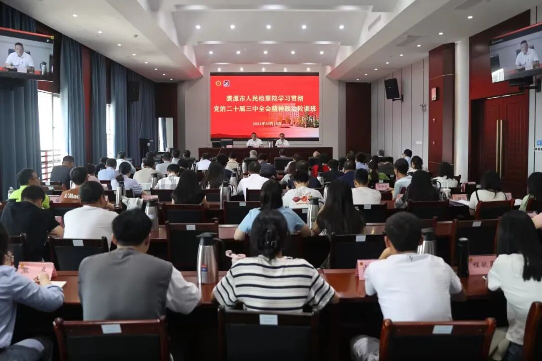 为全面贯彻落实党的二十届三中全会精神,切实提升检察人员政治素养,加强党的政治建设,强化纪律意识,锻造过硬检察队伍,10月14日——10月18日,鹰潭市人民检察院举办“学习贯彻党的二十届三中全会精神”政治轮训班。市院党组书记、检察长张江出席开班仪式并讲话,市院党组成员、政治部主任刘秋有主持开班仪式,两级院科级及以下检察人员参加培训。