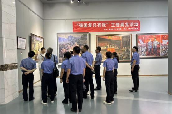 在讲解员的引导下,党员干警们漫步画幅之间,纵览红色盛景,沉浸式感知革命先辈顽强斗争、不畏牺牲、献身理想的不屈意志,具象化感受革命老区翻天覆地的喜人变化。