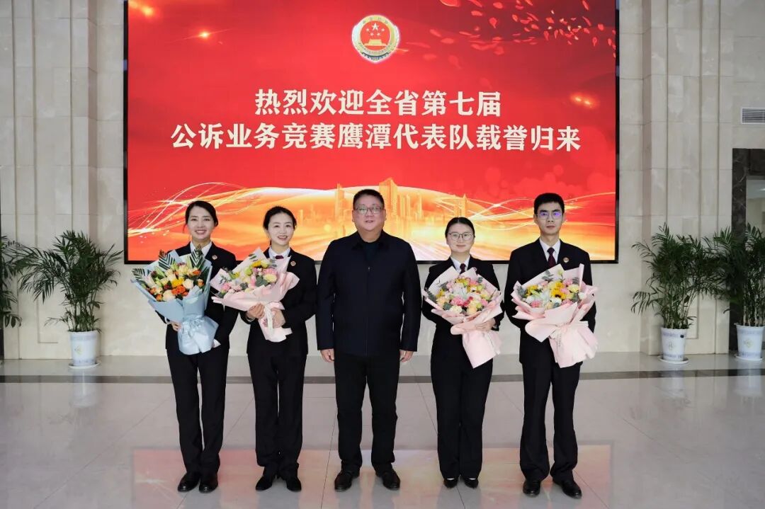 2月20日上午,鹰潭市人民检察院举行仪式,热烈欢迎全省检察机关第七届公诉业务竞赛鹰潭代表队载誉归来。市院党组书记、检察长张江主持仪式。市院相关领导,余江区院、月湖区院主要负责同志参加活动。